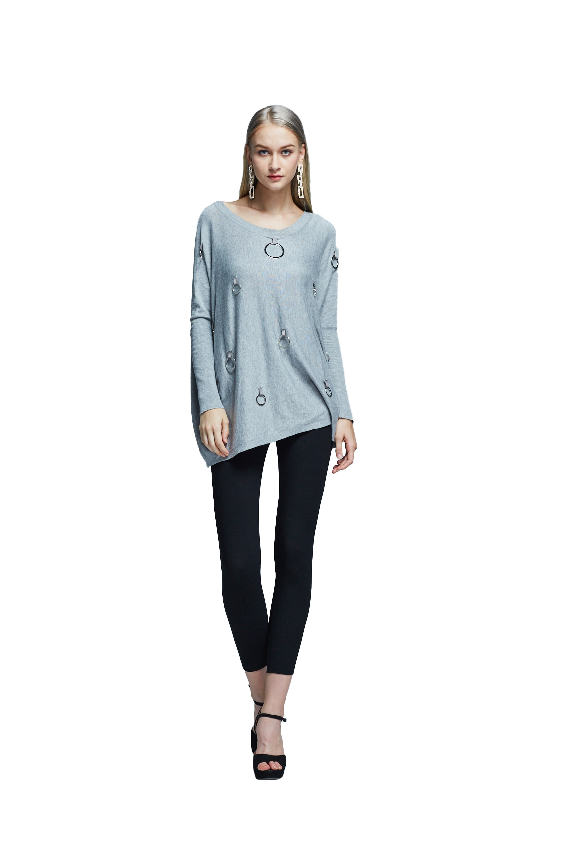 女士前胸织绳蝴蝶结喇叭袖口毛衣